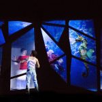 Alle parole, alla vita narrata, si aggiungono quindi le immagini, la vita “immaginata”: le scene di Diana Ciufo e le videoproiezioni di Daniele Salaris in videomapping realizzano sogni, aspettative, desideri. Non solo: trasformano il palcoscenico nel luogo da cui arrivano la voce e la presenza di Alan, una sorta di Atlantide, piccolo Eden subacqueo tra le cui spume, sabbie, coralli, la piccola esistenza del bambino è rimasta impigliata.