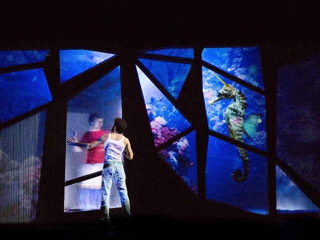 Alle parole, alla vita narrata, si aggiungono quindi le immagini, la vita “immaginata”: le scene di Diana Ciufo e le videoproiezioni di Daniele Salaris in videomapping realizzano sogni, aspettative, desideri. Non solo: trasformano il palcoscenico nel luogo da cui arrivano la voce e la presenza di Alan, una sorta di Atlantide, piccolo Eden subacqueo tra le cui spume, sabbie, coralli, la piccola esistenza del bambino è rimasta impigliata.