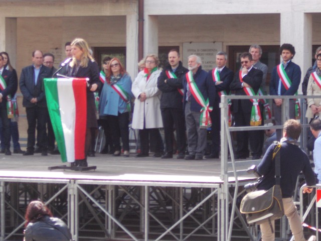 Dopo l'omaggio ai caduti presso il sacrario militare della Camerlona, in mezzo alla consueta e festosa celebrazione di quella che è stata una vittoria contro il Fascismo, dove una folta presenza di bambini faceva da cornice colorata al più rigido cerimoniale militare, i valori di una nuova resistenza al femminile contro la mafia hanno caricato di un significato estremamente attuale una manifestazione che da sempre riesce ad esaltare con parole nuove la forza della nostra democrazia.