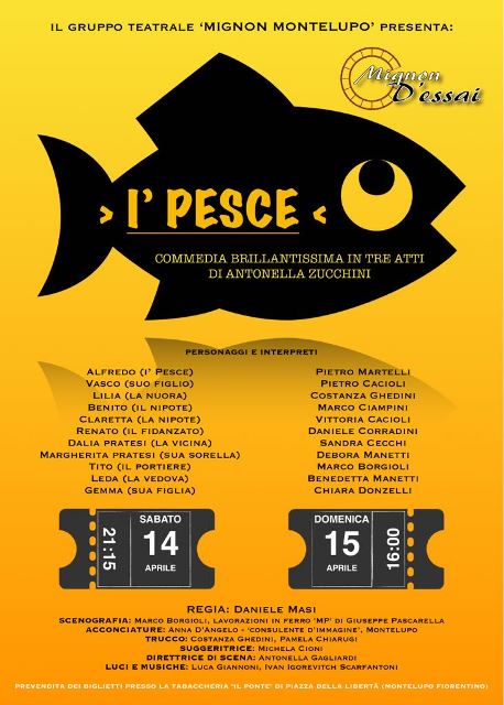 I' pesce, una brillante commedia in tre atti diretta da Daniele Masi, scritta da Antonella Zucchini, andrà in scena al Mignon D'Essai sabato 14 e domenica 15 aprile.