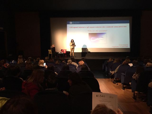 Il progetto in questione si propone di offrire un percorso formativo che possa contribuire a rafforzare i saperi e le competenze di educatori e insegnanti in merito alla tematica “Gli spazi interni e gli spazi esterni” in un’ottica di continuità zero sei. Il corso passa da tre incontri a carattere seminariale, con approfondimenti tematici da parte di docenti universitari, professionisti ed esperti. Nella prima giornata sono stati relatori Alessandro Mariani (“Lo spazio come dispositivo pedagogico”) ed Elena Falaschi, assegnista di ricerca all’Università degli Studi di Firenze (“Educare alla spazialità”). I prossimi appuntamenti, sempre al teatro Politeama, saranno il 3 maggio dalle 17,30 alle 19,30 con l’architetto romano Giovanni Fumagalli (“Ambiente generoso, sfondo discreto. Progettare spazi di qualità per i servizi educativi”) e la coordinatrice pedagogica Sara Zingoni (“Arredare lo spazio di qualità”) e il 26 maggio dalle 9 alle 13 con Maurizio Parente, ricercatore presso l’Istituto degli Innocenti di Firenze (“C’era una volta una lumachina... Il giardino: un luogo per giocare, scoprire, imparare”).
