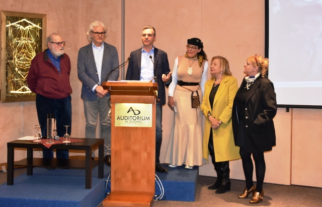 All’inaugurazione sono intervenuti: Paolo Del Bianco presidente del Centro Congressi al Duomo, Yan Jin Lin console cinese a Firenze, Carlo Cascianelli vice presidente dell’associazione Moving Gallery, Angela Tagani artista e consigliere dell’associazione Moving Gallery, Stefano Favaretto artista dell’associazione Moving Gallery.