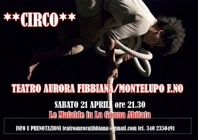 Sabato 21 aprile per rassegna Aurora Siderale, arriva il circo. Dalle 21.30 la compagnia Le Mafalde presenta lo spettacolo "La gonna abitata". Una gonna, tre acrobate ed una musicista danno vita ad un universo onirico dove la poesia si fonde col non-sense in una trama di pizzi e mutandoni. La troupe, tutta al femminile, declina in forma musicale e circense uno spettacolo agro-dolce, il cui ombelico in trasformazione è MaFalda: una gonna, e allo stesso tempo un essere vivente, una casa, un mondo in espansione che racchiude fra le sue pieghe le molteplici sfaccettature del suo essere. Così come ogni donna…