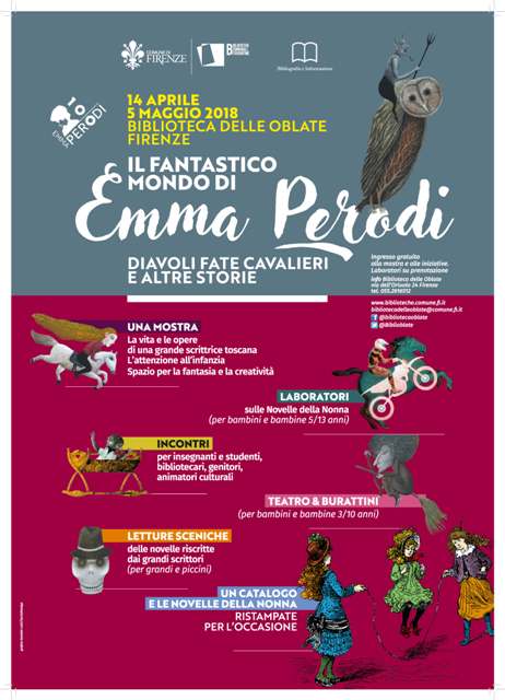 La mostra “Il fantastico mondo di Emma Perodi” è curata da Stefano De Martin, Federica Depaolis e Walter Scancarello e fa parte di un progetto più ampio predisposto dall’Associazione Bibliografia&Informazione che offre laboratori, letture sceniche ed incontri di studio organizzati alla Biblioteca delle Oblate, al Gabinetto Vieusseux, alla Biblioteca Marucelliana e al Teatro Niccolini di San Casciano Val di Pesa. Tutto questo grazie al Comune di Firenze e alle Biblioteche comunali fiorentine con il sostegno di numerosi soggetti fra cui il Comune di Cerreto Guidi.