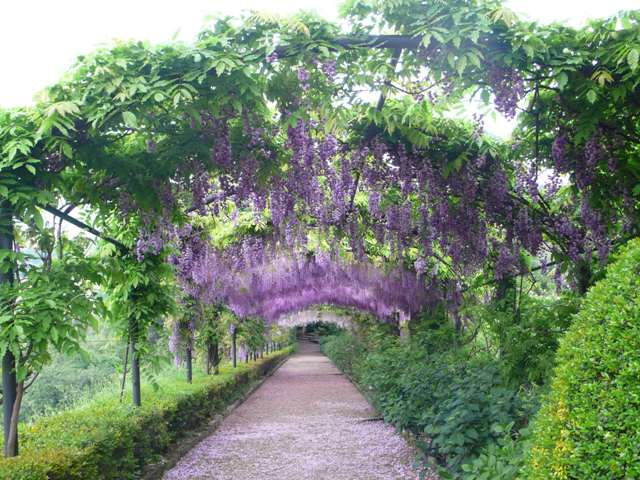 Le visite guidate, a cura di Beemyguide, porteranno i visitatori alla scoperta di tutte le curiosità della pergola più famosa di Firenze. L'architetto paesaggista Claudia Mezzapesa spiegherà come riconoscere le varietà di glicini presenti nel giardino, quella giapponese e quella cinese, e racconterà le leggende orientali legate a questa antica pianta originaria dell'Estremo Oriente. Il percorso parte dall'ingresso al giardino di Via dei Bardi 1r, e prosegue nella parte bassa della scalinata barocca, per poi risalire lungo il frutteto e arrivare alla celebre pergola dei glicini. Sono in programma anche due tappe speciali: al Canale del Drago e in villa alla mostra delle illustrazioni dell'Archivio Storico Salani “Pinocchio, Harry Potter, Topolino, Heidi e tutti gli altri...”. Le visite guidate sono previste ogni giorno, dal 21 marzo al 1 maggio, con diversi orari a seconda dei giorni feriali e festivi (le prenotazioni sono disponibili sul sito www.beemyguide.com, costo 10 euro). Sono in tutto 25 appuntamenti di cui 7 in lingua inglese, della durata ciascuno di un'ora e un quarto.