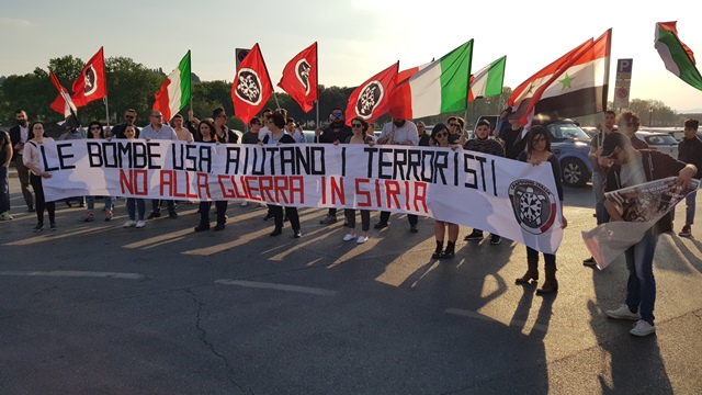 “Abbiamo ritenuto doveroso protestare”, chiarisce in una nota CasaPound Firenze, “perché gli Stati Uniti, Gran Bretagna, Francia ed i loro soliti alleati stanno perpetrando l’ennesimo attacco criminale contro uno Stato sovrano, violando le più elementari norme di diritto internazionale, usando come pretesto dei fatti che nessuno ha dimostrato essere effettivamente avvenuti. Lo scopo reale di tale aggressione è evidentemente un altro: tentare di abbattere Bashar al-Assad, Presidente legittimamente eletto dal suo popolo, per mere motivazioni economiche."