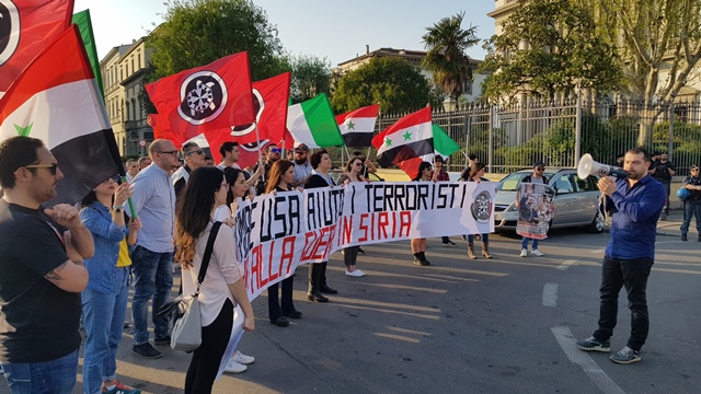 “Abbiamo ritenuto doveroso protestare”, chiarisce in una nota CasaPound Firenze, “perché gli Stati Uniti, Gran Bretagna, Francia ed i loro soliti alleati stanno perpetrando l’ennesimo attacco criminale contro uno Stato sovrano, violando le più elementari norme di diritto internazionale, usando come pretesto dei fatti che nessuno ha dimostrato essere effettivamente avvenuti. Lo scopo reale di tale aggressione è evidentemente un altro: tentare di abbattere Bashar al-Assad, Presidente legittimamente eletto dal suo popolo, per mere motivazioni economiche."