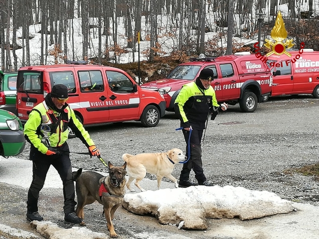 Vigili del fuoco in Val di Luce, esercitazione del nucleo cinofili