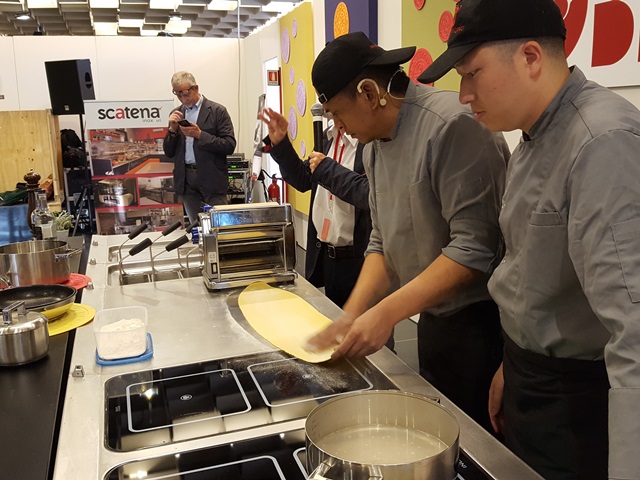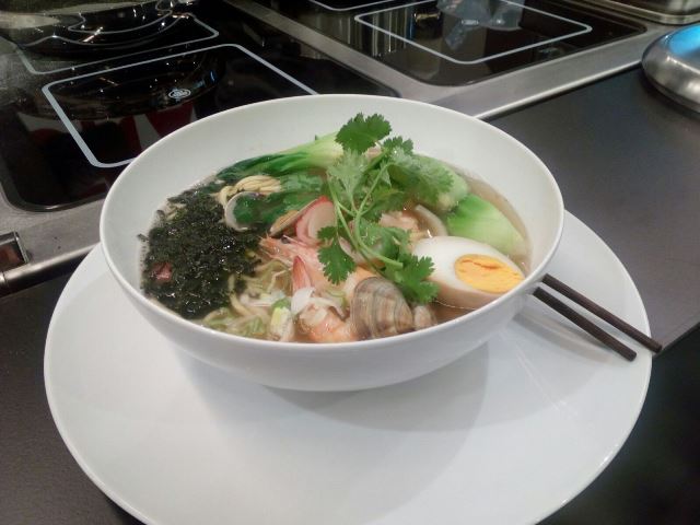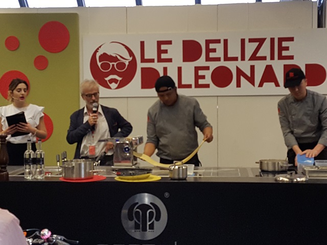 Questa mattina, tra gli altri, lo chef cinese che ha girato le cucine di ristoranti in ogni parte del mondo, Yun Bao, ha raccontato, preparato e offerto ai visitatori dello stand di Leonardo Romanelli, due piatti di cucina fusion orientale: i ramen ai frutti di mare e il branzino caramellato. Un viaggio alla scoperta di odori, sapori e colori che sono simili in ogni angolo del mondo, ma che in ogni Paese hanno la loro particolarità. È il caso dei 'noodles', pasta fresca che per molti versi può ricordare le tagliatelle della nonna, ma che in realtà nascono in Estremo Oriente e seguono una tradizione completamente diversa rispetto a quella della cucina italiana.