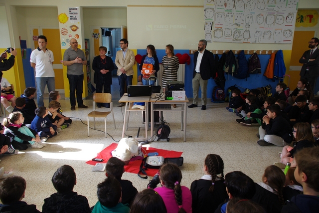 Fabio Perini S.p.A., azienda leader nel settore della produzione di macchine per il tissue, insieme alla Onlus Mirco Ungaretti, ha organizzato oggi corsi di rianimazione cardiopolmonare per alunni, circa 140, e insegnanti della Scuola Primaria della Pieve San Paolo. Inoltre, durante una piccola cerimonia alla presenza di Oswaldo Cruz, CEO Fabio Perini, del preside Tina Centoni con Roberta Lena coordinatrice del complesso della Scuola Primaria della Pieve San Paolo, di tutti i docenti e dell’Assessore politiche educative del comune di Capannori Francesco Cecchetti, l’azienda ha donato all’istituto scolastico un defibrillatore semi automatico.