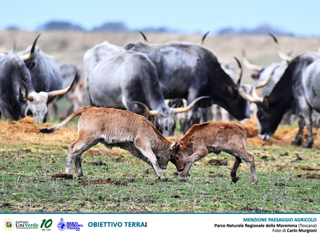 Assegnati ben due riconoscimenti alla Toscana. Vincitrice della Menzione “Paesaggio agricolo” della 9a edizione del concorso, è la foto di Carlo Murgioni. Lo scatto, realizzato nel Parco Naturale Regionale della Maremma, ritrae una tipica sfida maremmana tra vitelli.