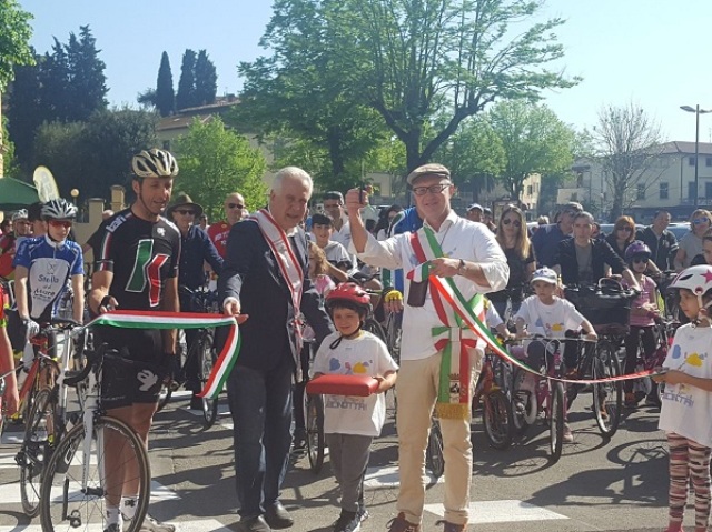Tutti in bicicletta ieri mattina a Fucecchio per l'inaugurazione della nuova pista ciclabile che da Piazza XX Settembre conduce a Piazza Pertini e che mette in comunicazione l'area del mercato, la stazione dei bus, alcuni plessi scolastici (scuole primarie Carducci, scuole medie Montanelli Petrarca, liceo Checchi) e alcuni impianti sportivi cittadini come il palazzetto dello sport. Al taglio del nastro erano presenti il sindaco Alessio Spinelli, il presidente del consiglio regionale Eugenio Giani, il grande campione Andrea Tafi, fucecchiese, ancora oggi unico ciclista italiano ad aver vinto sia la Parigi-Roubaix sia il Giro delle Fiandre. All'apertura del nuovo tracciato ciclo-pedonale è intervenuto anche Don Andrea Pio Cristiani, arciprete della Collegiata di Fucecchio e fondatore del Movimento Shalom.