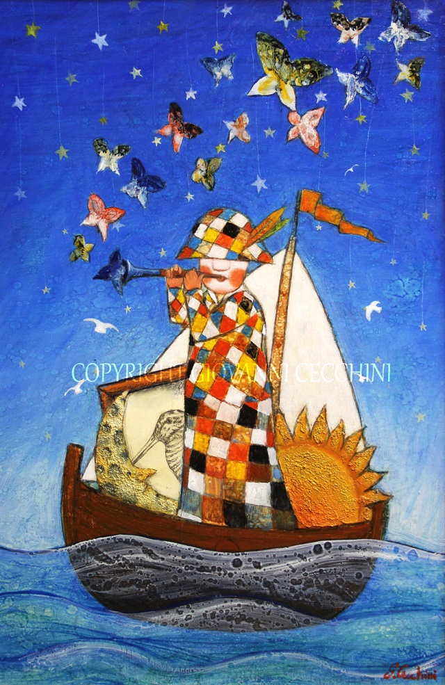 La pittura di Cecchini è onirica, fantasiosa ed il simbolismo a tratti oscuro ed ermetico come scrive la critica Elena Capone nel suo saggio introduttivo sul pittore toscano.