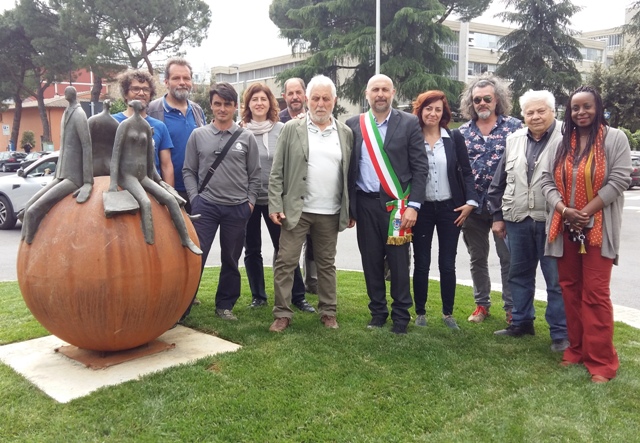 La 'Sfera con viaggiatori' di Staccioli alla rotonda di via Reggimento