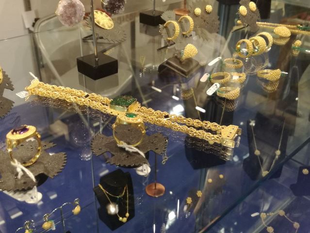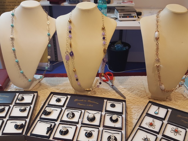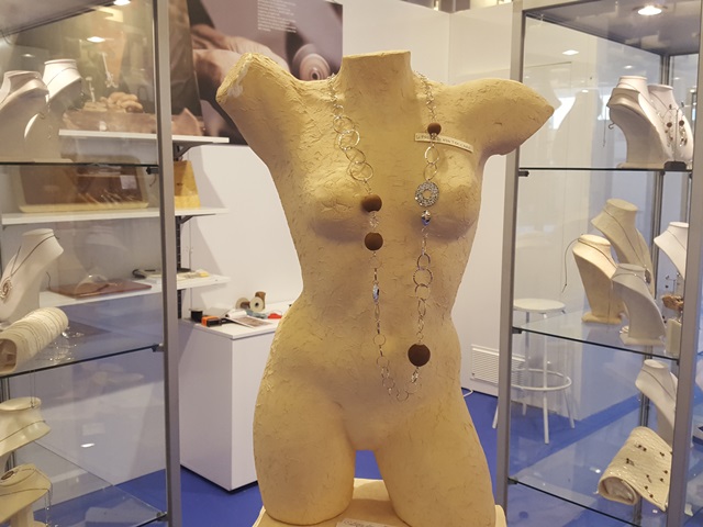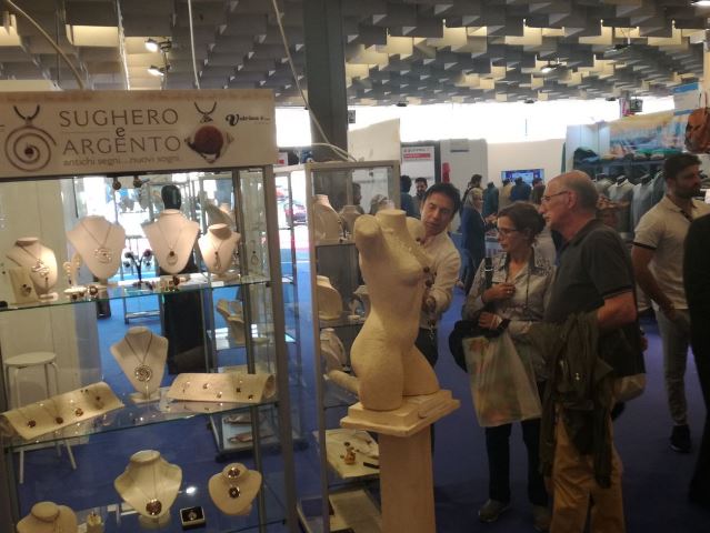 I gioielli di Silvia Lai colpiscono per la tecnica innovativa con cui sono realizzati. Silvia Lai, ex scenografa, è un'orafa che ha approntatp una sua personale tecnica della lavorazione del sughero e lo trasforma in un materiale duttile e adatto alle sue esigenze progettuali. Ha intrapreso un percorso creativo per accostare questo elemento alle tecniche della tradizione orafa sarda, con una particolare attenzione alla lucidatura a specchio del metallo. La sua linea di gioielli propone monili ispirati agli elementi della natura. Le forme che riesce a ideare evocano paesaggi isolani. Il freddo metallo sposa il caldo sughero la cui arte decorativa è legata alla simbologia arcaica della cultura sarda. Qui in Fortezza a rappresentare Silvia Lai, c'è suo marito, Gianluca Mureddu, per la prima volta in Mostra:"Firenze rappresenta a pieno titolo l'arte e la cultura italiana- spiega Mureddu-. Noi siamo attenti alla simbologia legata alla storia e alla cultura e pensiamo che chi sceglie Firenze sa apprezzare i progetti artistici che partono dal concetto della vita e della fertilità della terra. Per questo siamo felici di far parte dei maistos che rappresentano la nostra Sardegna e abbiamo scelto di essere presenti alla Mostra dell'Artigianato".