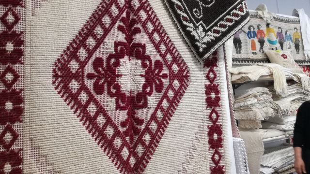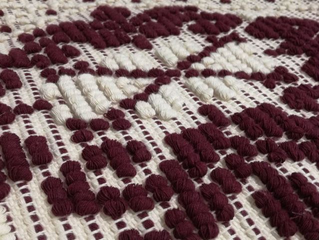 Maria Vittoria Nonna è una donna sarda, di Sennori, nel Golfo dell'Asinara, un'artigiana, una dispensatrice di sapere e tradizione legato alla lavorazione della lana, del cotone e del lino al telaio. I tappeti, le coperte, i centrini esposti in Fortezza, raccontano una storia che si perde nella notte dei tempi, ma che è viva e attuale, palpabile, come il tessuto naturale dei lavorati in mostra. I tappeti sono tessuti 'a piviones' cioè a rilievo, oggi come nella tradizione al telaio di legno. La storia della lavorazione a piviones è arcaica e legata alla figura della donna. "Prima tutte le donne di casa tessevano al loro telaio per confezionare coperte, asciugamani, copri-cassapanche e tappeti-racconta Maria Vittoria-. Noi portiamo avanti la tradizione coinvolgendo artigiane da tutta la Sardegna".