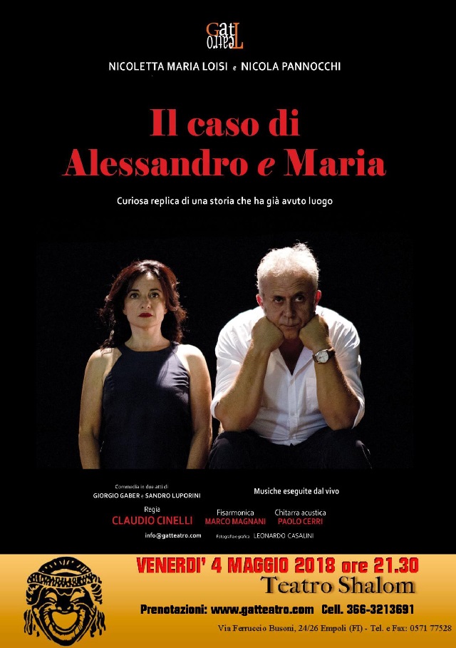 Al Teatro Shalom, venerdì 4 maggio, andrà in scena 'Il caso di Alessandro e Maria', con Nicoletta Maria Losi e Nicola Pannocchi, per la regia di Claudio Cinelli.