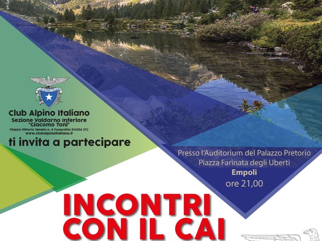 Cominciati il 12 aprile scorso all’Auditorium di Palazzo Pretorio. in piazza Farinata degli Uberti a Empoli, alla presenza di Eleonora Caponi,assessore alla cultura del Comune di Empoli, proseguono gli “Incontri con il CAI”, organizzati dal Club Alpino Italiano sezione Valdarno Inferiore ‘Giacomo Toni’.