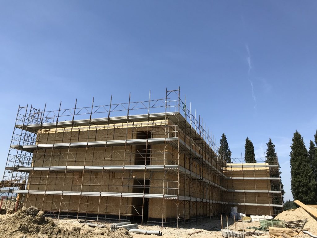 I lavori proseguono, come da programma, e vedono completamente realizzate le pareti strutturali verticali dei piani comprese le porzioni sporgenti della facciata laterale.