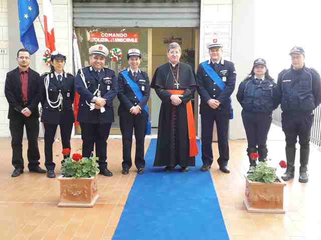 Il Cardinale, accolto da tutto il personale PM schierato davanti all'ingresso del Comando con la bandiera del corpo, ha visitato i locali da poco ristrutturati e resi più accoglienti e accessibili alla cittadinanza, grazie all'impegno e al lavoro dei vigili e degli addetti del Comune nelle ultime settimane.