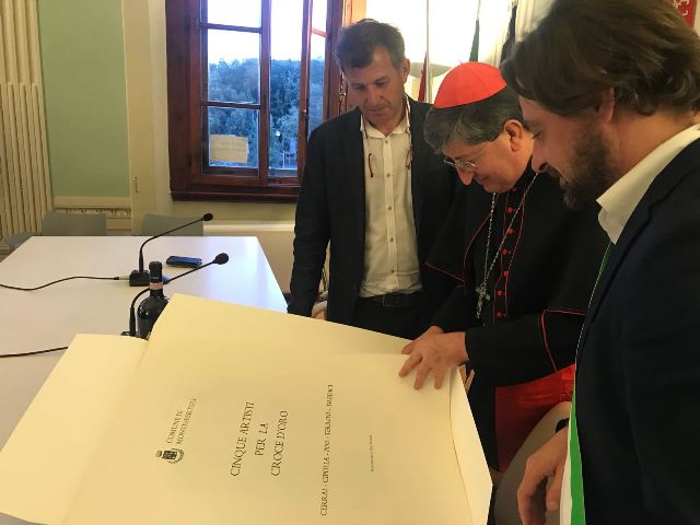 Ci sono stati, poi, gli interventi dei consiglieri che hanno ribadito l'importanza della visita dell’Arcivescovo, in un'ottica di collaborazione istituzionale tra la chiesa e il Comune. Il dialogo istituzionale si è concluso con il dono a Betori, da parte dell'Assise presieduta da Florian Haeusl, della pubblicazione “5 artisti per la Croce d'Oro”.