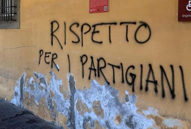 "Rispetto per i partigiani", questo è quanto appare scritto sul muro del municipio di Cascina. La scritta è comparsa nella notte tra il 26 e 27 aprile e non c'è una firma che possa servire da rivendicazione. Nel mirino c'è l'ormai arcinota parata con soldati delle SS e alleati, che servirà a rievocare i conflitti della seconda guerra mondiale in centro a Cascina. Già nei giorni scorsi la scelta di far partecipare persone con uniforme tedesca aveva suscitato molte polemiche, come quella del PD.