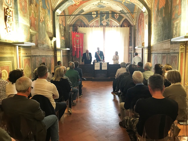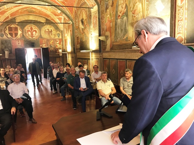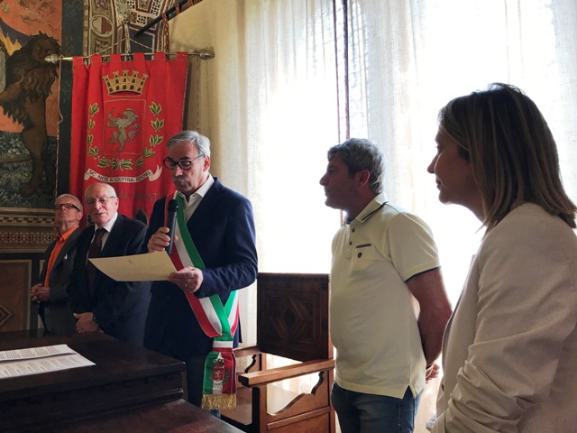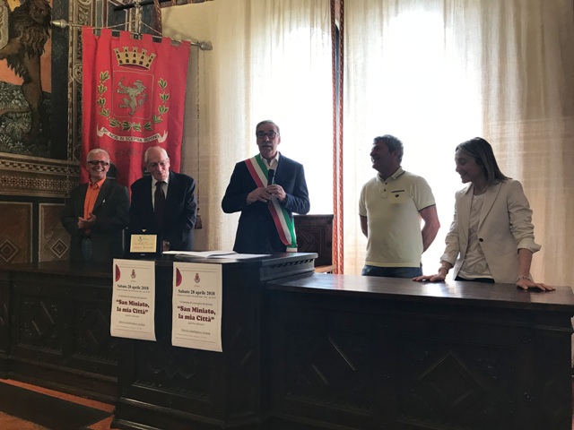 E’ stato Daniele Benvenuti a ricevere il premio “San Miniato, la mia Città”, edizione 2017. Una grande cerimonia quella che si è svolta, questa mattina (28 aprile), nella storica Sala delle Sette Virtù in Palazzo Comunale alla presenza di moltissimi cittadini che non hanno voluto mancare alla consegna dell’ambito riconoscimento.