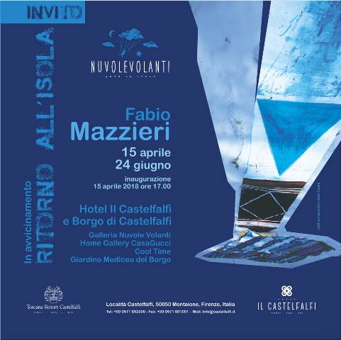 Inaugura la rassegna TRALENUVOLE2018 la mostra “Ritorno all’isola” di Fabio Mazzieri, aperta al pubblico fino a fine giugno. L’artista si contraddistingue per la sua ricerca di nuovi modi di espressione; utilizza nelle sue opere carta e tela, materiali antichi, duri, modellabili. Usa molti colori, molte tecniche, celebra in alcune l’assenza del colore e della forma. I suoi teli giganti – i Tesi come lui li chiama – dipinti vengono adagiati al suolo o lasciati cadere a metà in terra. Fabio Mazzieri crea momenti in cui l’arte si interseca con l’ambiente e con chi la osserva, un’arte che si fa calpestare perché parte integrante dell’ambiente, dello spettatore.
