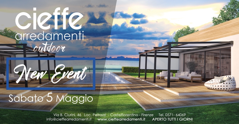 La Cieffe Arredamenti di Castelfiorentino (via B. Ciurini, 46 in località Petrazzi) si apre all'outdoor. Sabato 5 maggio vi aspetta un evento esclusivo in azienda, dove potrete prendere i primi contatti per arredare la vostra area esterna. Con la bella stagione il vostro spazio esterno potrà accogliere strutture di ogni tipo per vivere al meglio ogni giornata di sole.