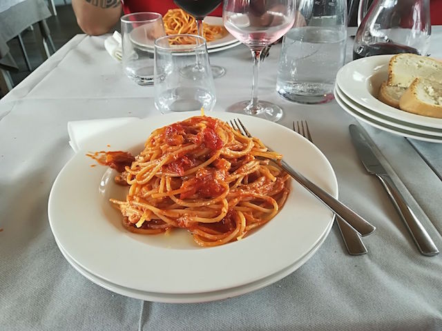 La mattina seguente tutti i Vespisti presenti (circa 200 ufficialmente iscritti, ma in totale si parla di 500, da tutta Italia e qualche club anche dall'estero) sono partiti da Assisi verso Bevagna (dove si è unito a loro anche il nostro secondo gruppo), Montefalco e Norcia, dove è stata fatta una sosta con una breve visita. Poi di nuovo in sella per strade secondarie ma molto panoramiche fino all'arrivo ad Amatrice, dove presso le nuove scuole il corteo è stato accolto dal vice sindaco, che ha ricevuto un assegno di 5000€, frutto della beneficenza del mondo Vespa. Ma i nostri hanno donato al municipio anche una fascia ufficiale del Vespa Club Empoli, a conferma della nostra vicinanza alla popolazione. Dopo i ringraziamenti, tutti a pranzo, dislocati nei vari ristoranti della città, ovviamente davanti ad un bel piatto di "Amatriciana".
