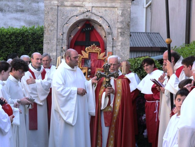 Le celebrazioni religiose, invece, prenderanno il via alle ore 16 dalla Pieve di San Giovanni Decollato alla Rocca, da dove partirà la processione con l'ostensione della pregiata croce astile in argento, risalente al 1300 e opera di Andrea Di Jacopo D'Ognabene.