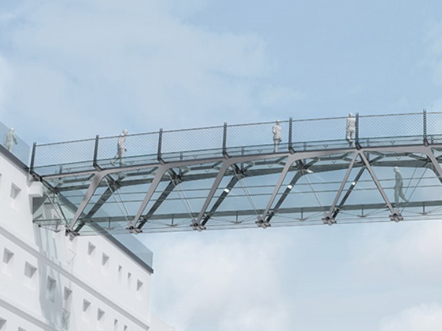 Il progetto pisano ha proposto una passerella pedonale costruita quasi integralmente in vetro, dotata di due livelli di camminamento sovrapposti e capace di superare 30 metri di luce sfruttando una tecnica innovativa sulla quale il professor Froli ha depositato due brevetti per l’Università di Pisa.