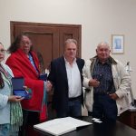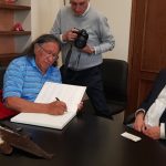 Il sindaco Mauro Lorenzini, insieme al suo vice, Simone Calamai, questa mattina ha ricevuto ufficialmente in municipio una delegazione dei nativi americani Sioux Lakota, attualmente presenti a Montemurlo in occasione della mostra “Il grande sacro” alla Rocca. Il gruppo era composto da Marla Bull Bear e Jerome Redstar della Youth Development, Robert Nelson e Milo Yellow Hair Pine Ridge, insegnante e uomo sacro.