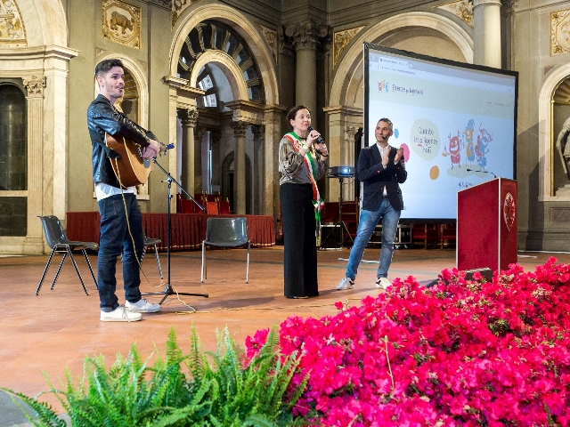 - FOTO UFFICIO STAMPA COMUNE DI FIRENZE Palazzo Vecchio, nel Salone dei Cinquecento, conclusione del festival dei bambini con il sindaco Dario Nardella CGE fotogiornalismo