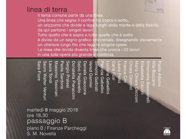 Martedì 8 Maggio alle ore 18.30 presso il Passaggio B (al piano 0) della Firenze Parcheggi Piazza Stazione S.M. Novella a Firenze sarà inaugurata un’installazione grafica di incisioni dal titolo: 'Linea di terra'.