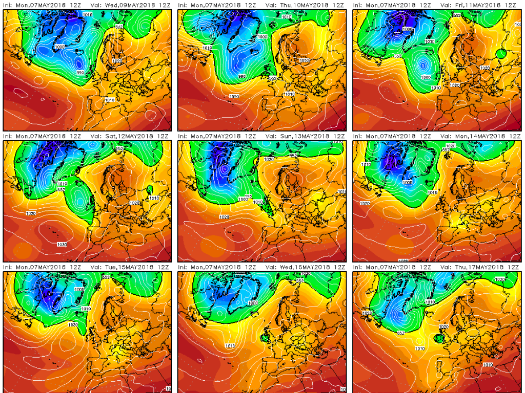 Un primo run restituirà una depressione gelida sull'Italia, un altro una saccatura sulla Spagna con scirocco sull'Italia, un altro ancora vedrà un alta pressione con valori barici elevatissimi su tutta l'Europa.