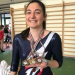 Si parte con le Senior, qualche sfumatura negativa a parallele sciupa la gara di Martina Puri che si classifica 15°, Letizia Meini gareggia serenamente facendo il proprio lavoro e si classifica 11°, Sara Meozzi fa tutto piuttosto bene e porta a casa il 7° posto a qualche decimo di differenza dalle amiche Isabel Fiorilli e Camilla Mazzone rispettivamente 6° e 5° a pari merito, peccato per qualche imperfezione di troppo di Camilla a parallele che le abbassa una media altissima dei punteggi agli altri attrezzi. Anche grazie a questi bei risultati Camilla e Sara raggiungono la qualificazione alle finali nazionali di Cattolica. Chi ha stupito di più in questa giornata di finali regionali valide per la qualifica ai nazionali è Giuditta Rossi, che nella categoria specialità fa il pieno di premi importanti: prima a trave, terza a parallele nella classifica di giornata, raggiungendo il secondo posto in regione a trave e terza a parallele. Ottima prova la nostra Giuditta, che si è premiata con una fantastica serie di sali-scendi dal podio, per ritirare 4 meritate medaglie.