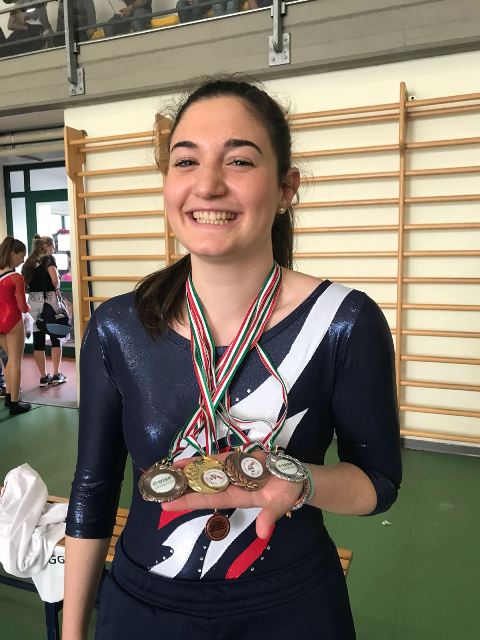 Si parte con le Senior, qualche sfumatura negativa a parallele sciupa la gara di Martina Puri che si classifica 15°, Letizia Meini gareggia serenamente facendo il proprio lavoro e si classifica 11°, Sara Meozzi fa tutto piuttosto bene e porta a casa il 7° posto a qualche decimo di differenza dalle amiche Isabel Fiorilli e Camilla Mazzone rispettivamente 6° e 5° a pari merito, peccato per qualche imperfezione di troppo di Camilla a parallele che le abbassa una media altissima dei punteggi agli altri attrezzi. Anche grazie a questi bei risultati Camilla e Sara raggiungono la qualificazione alle finali nazionali di Cattolica. Chi ha stupito di più in questa giornata di finali regionali valide per la qualifica ai nazionali è Giuditta Rossi, che nella categoria specialità fa il pieno di premi importanti: prima a trave, terza a parallele nella classifica di giornata, raggiungendo il secondo posto in regione a trave e terza a parallele. Ottima prova la nostra Giuditta, che si è premiata con una fantastica serie di sali-scendi dal podio, per ritirare 4 meritate medaglie.