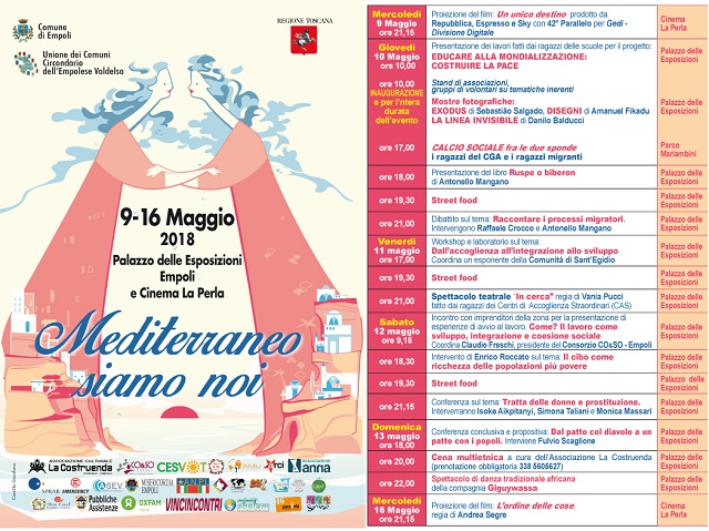 Dal 9 al 16 maggio Empoli ospiterà la prima edizione di Mediterraneo Siamo Noi, un grande evento che vuole essere uno strumento per l'affermazione dei diritti universali di accoglienza, di etica solidale.
