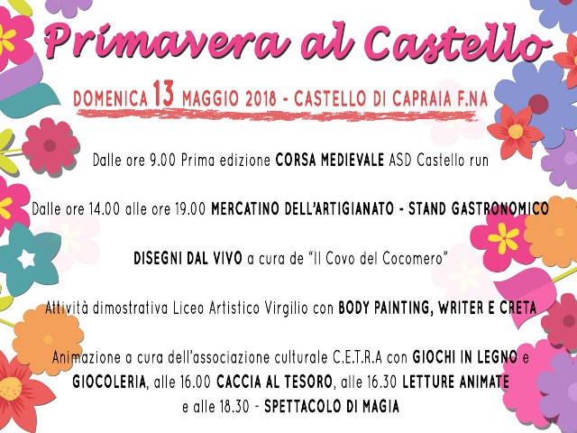 Domenica 13 maggio sarà un giorno di festa a Capraia e Limite. L'Amministrazione Comunale, infatti, ripropone l’iniziativa “Primavera al Castello”, giunta alla quarta edizione, con l’obiettivo di confermare il processo di valorizzazione del Castello medievale di Capraia Fiorentina e superare il successo degli anni scorsi, quando si registrarono circa mille presenze.