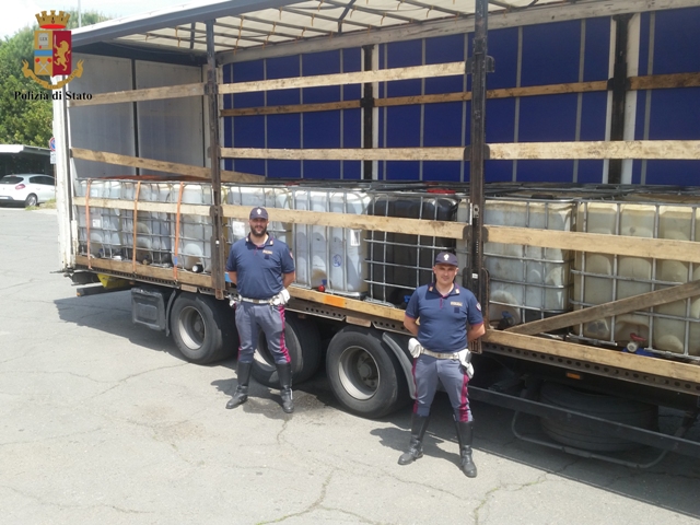 Quel camion con targa polacca, ha insospettito i poliziotti, che hanno deciso di controllarlo. Non appena si sono avvicinati al mezzo hanno subito avvertito un forte odore di carburante pur se dai documenti di bordo risultava che il mezzo trasportava olio industriale, caricato in Germania e diretto a Napoli.