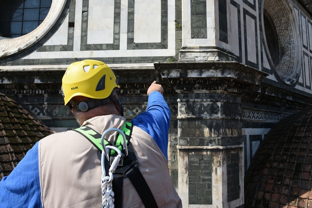 Si tratta di una delle attività di manutenzione che l’Opera di Santa Maria del Fiore fa regolarmente sui propri monumenti e che permette di controllare in dettaglio i circa 40 mila metri quadrati di superfici marmoree, di verificarne lo stato di conservazione, individuare i possibili degradi e programmare gli interventi di restauro. Dal 2015, il monitoraggio delle facciate esterne è effettuato semestralmente invece che annualmente, alla fine e all’inizio dell’inverno.