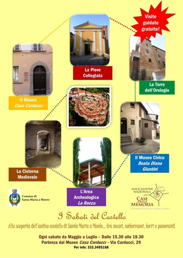Dal 12 Maggio fino al tutto il mese di Luglio, i sabati pomeriggi di Santa Maria a Monte avranno un taglio culturale, con appuntamenti di trekking urbano che proporranno una vera e propria camminata alla scoperta dell’antico castello di Santa Maria a Monte...tra musei, sotterranei, torri e panorami!