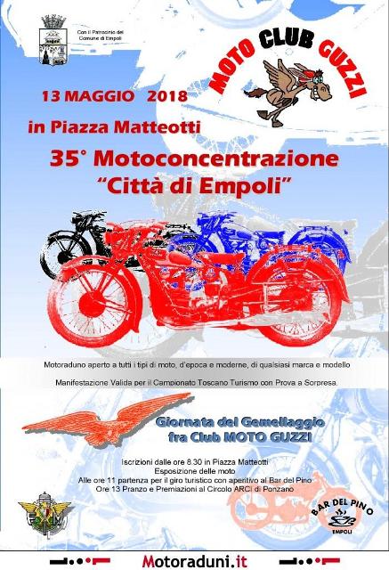 Viabilità Motoraduno – L’iniziativa “Motoconcentrazione Città di Empoli” interesserà piazza Matteotti, via Dainelli, viale Giotto e Ponzano, dalle 7 alle 11.45 di domenica 13 maggio 2018.