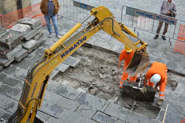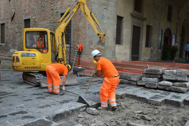 In dettaglio i lavori consistono nella sistemazione di porzioni di lastricato danneggiate partendo dalla rimozione della pavimentazione esistente. Le pietre in buono stato saranno riutilizzate, mentre quelle rotte o usurate verranno sostituite. Una volta rimosso il lastricato verrà eseguito uno scavo sottostante in modo da realizzare un massetto di cemento, cioè un piano più stabile e robusto sul quale poi saranno murate le pietre.