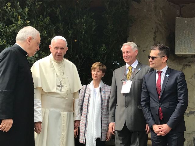 Dopo aver impartito ai presenti la sua benedizione, 37 cittadini di Loppiano di diverse provenienze, religioni, età ed estrazione sociale hanno salutato personalmente Papa Francesco.