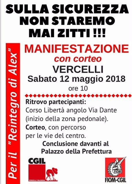 Inaccettabile quanto avvenuto al delegato sindacale ed Rls Alex Villarboito della Sacal di Vercelli (l’uomo, secondo la denuncia della Fiom Cgil, qualche giorno fa è stato licenziato dopo aver rilasciato alcune dichiarazioni ai giornali in merito ad un infortunio avvenuto a marzo dentro la ditta, per il quale era stato indetto uno sciopero.) Ogni diritto viene oramai calpestato nel più arrogante dei modi. Il Coordinamento Rls Fiom Cgil Firenze, aderisce alla petizione promossa dal Rls Marco Bazzoni e con una delegazione saremo anche presenti alla manifestazione di domani a Vercelli indetta dalla Fiom Cgil, per chiedere l’immediata reintegra del compagno Alex.