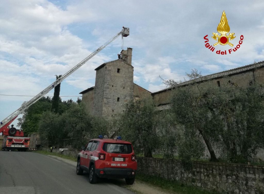 I Vigili del Fuoco del Comando di Siena sono intervenuti in Comune di Monteroni d'Arbia, Loc. Ville di Corsano, presso la Chiesa di San Giovanni Battista, per la messa in sicurezza della vela della torre campanaria.