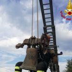 L'intervento della squadra dei vigili del fuoco si è reso necessario per la messa in sicurezza della muratura residua e per la rimozione di 2 campane.