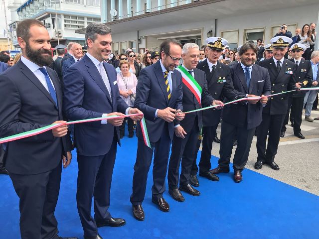 La solenne cerimonia dell’alzabandiera, a cura dei militari della Capitaneria di porto di Viareggio, ed il successivo “taglio del nastro” del Vice Ministro delle Infrastrutture e Trasporti Riccardo Nencini, sono stati allietati dalle note musicali della Fanfara Dipartimentale della M.M. del Comando Marittimo Nord di La Spezia.